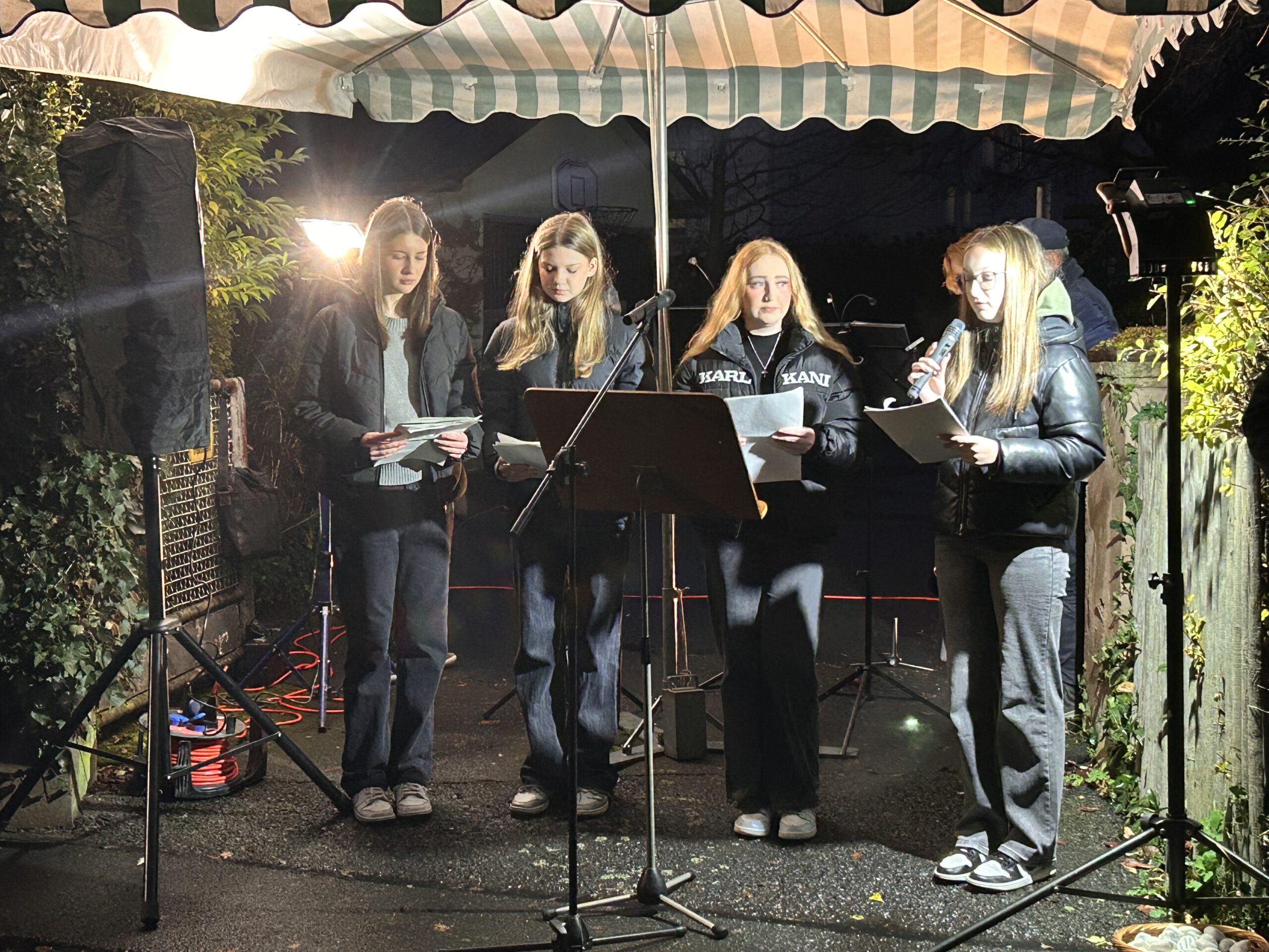 Auch in diesem Jahr hat unsere Schule am 9.November der Opfer der Novemberprogrome gedacht. Die diesjährige Veranstaltung wurde von Laura Schütz, Jule Obermann, Selina Geißel und Henriette Konle – vier engagierten Schülerinnen aus der 10Rb -gestaltet. Gemeinsam mit unserem Schulpfarrer Jürgen Seng sowie Lehrerin Esther Haardt aus dem Fachbereich Religion/Ethik die bei der inhaltliche Vorbereitung unterstützt hatten.