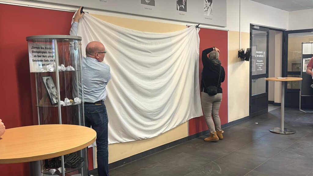 Gestern wurde an unserer Schule feierlich eine neue Gedenktafel enthüllt, gemeinsam mit allen Lehrkräften. Seit 2004 trägt unsere Schule den Namen Geschwister-Scholl-Schule. Der Wunsch, dies auch nach außen sichtbar zu machen und den historischen Zusammenhang zu verdeutlichen, bestand schon lange. Viele Ideen aus den vergangenen Jahren konnten jedoch nicht umgesetzt werden. Mit Unterstützung der Schulleitung ist es nun gelungen, diesen Wunsch zu verwirklichen.